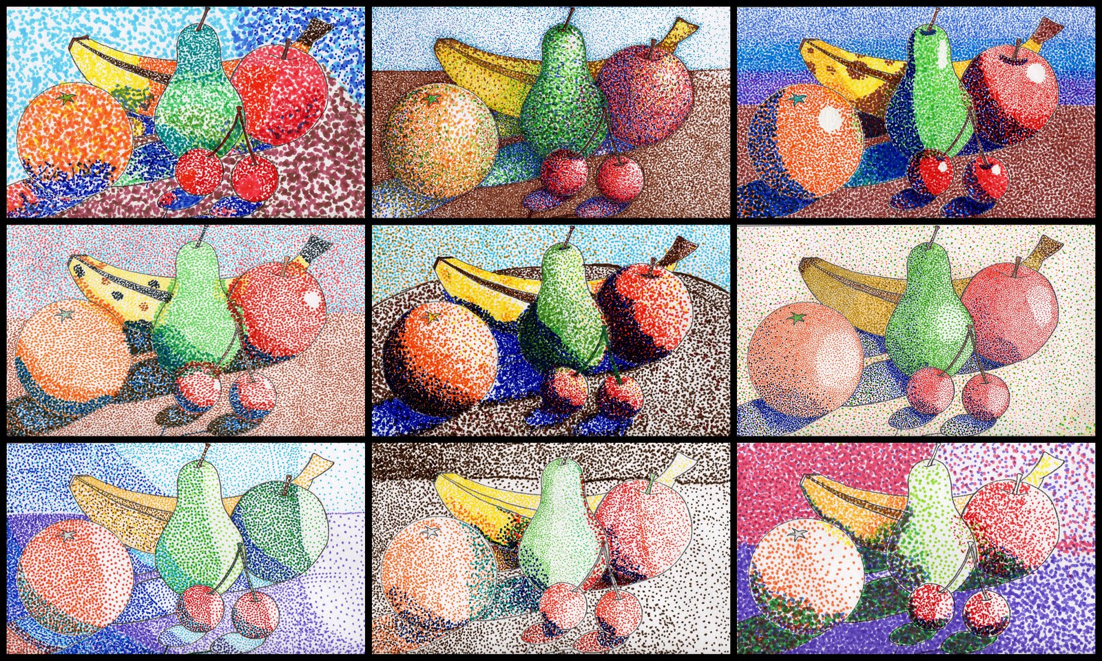 Realizaremos una imagen compuesta a base de puntos de color. Es decir, vamos a dibujar los contornos a lápiz, pero el color lo aplicaremos sólo a base de puntitos con rotulador (al estilo de la imagen que vemos aquí)