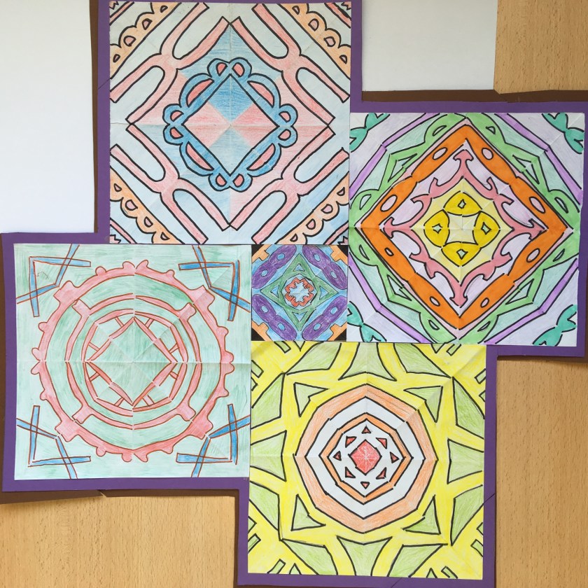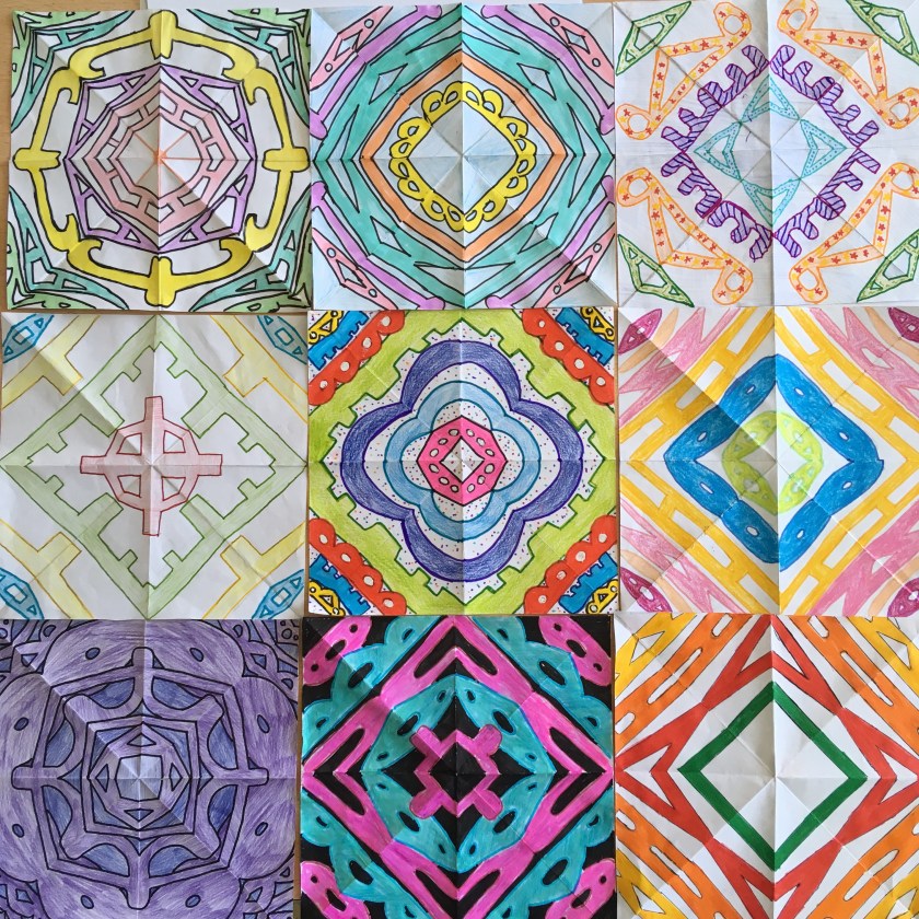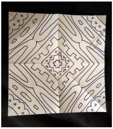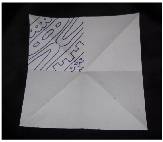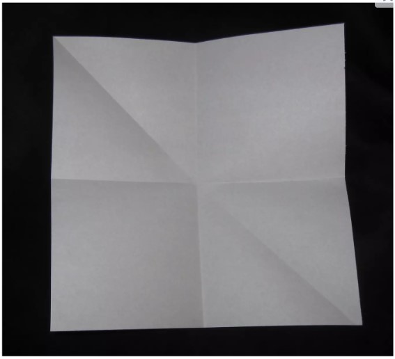 - Dobla el cuadrado por sus diagonales (de vértice a vértice) y por los puntos medios de sus lados