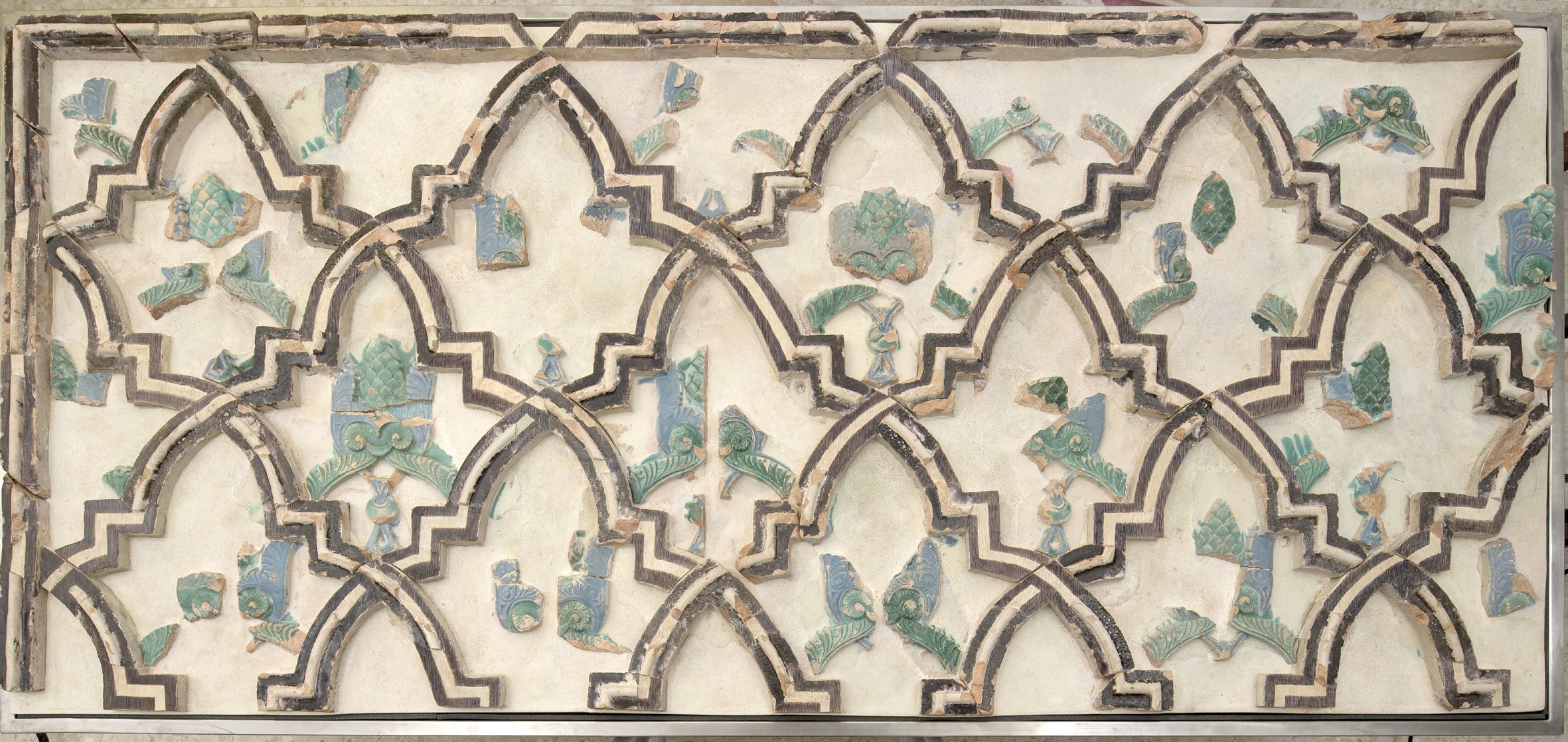 Los artesanos nazaríes empleaban técnicas matemáticas avanzadas para crear complejos patrones de simetría que daban la impresión de un orden infinito y una conexión directa con lo trascendental. Esto se refleja, por ejemplo, en los sebka, unas composiciones reticulares en las que se combinan motivos geométricos y vegetales, y que presentan simetrías rotacionales y traslaciones perfectamente calculadas.