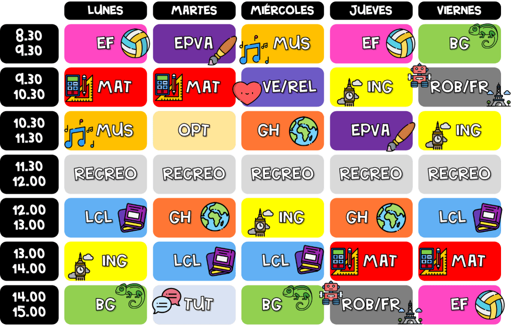 Si terminas el trabajo antes de que termine el tiempo asignado, puedes hacer un trabajo extra para subir nota. En esta ocasión se trata de hacer pictogramas con tus asignaturas y usarlos para crear tu horario, ¿te atreves?