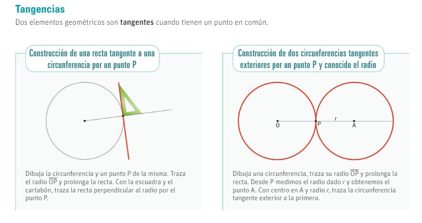 Recta que toca a la circunferencia en un solo punto (llamado punto de tangencia) y es perpendicular a un radio.// A line that intersects a circle in exactly one point (called tangent point) and is perpendicular to the radius in that point.