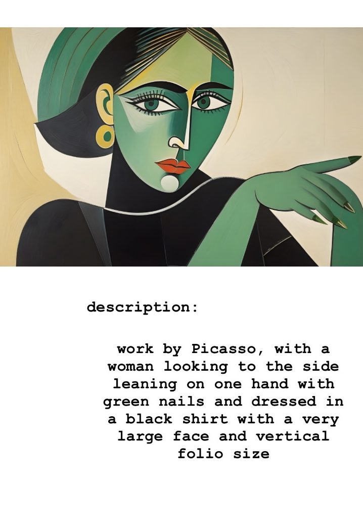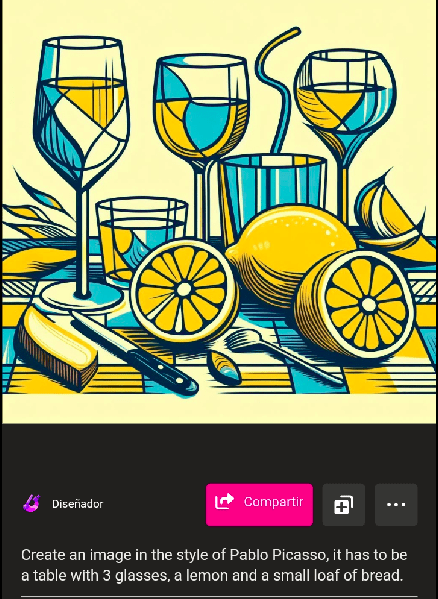In this task you will have to make a description of your last work based on Picasso. Later you will have to enter that description in an image generative AI app and publish the result